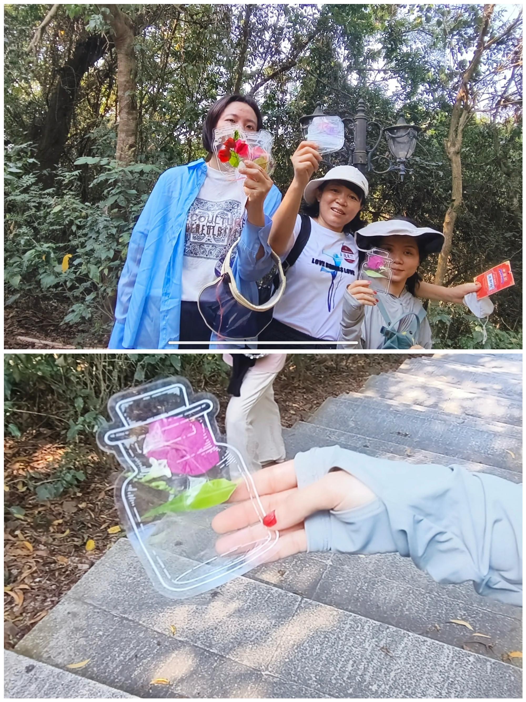 登山賞景的同時(shí),各小組每人還要收集3種以上不同花草,制成壓花書簽。一路上,大家看到地上散落的花草紛紛主動(dòng)撿起,為制作書簽準(zhǔn)備好材料。“壓花書簽,是一種非常流行的手工藝術(shù)體驗(yàn),制作過(guò)程簡(jiǎn)單,又別有意趣。”收集到的花草經(jīng)過(guò)大家的構(gòu)思、設(shè)計(jì)和搭配,被制作成了一枚枚精美的書簽,大家紛紛表示,在三八婦女節(jié)收獲一份自己親手制作的禮物很有意義。