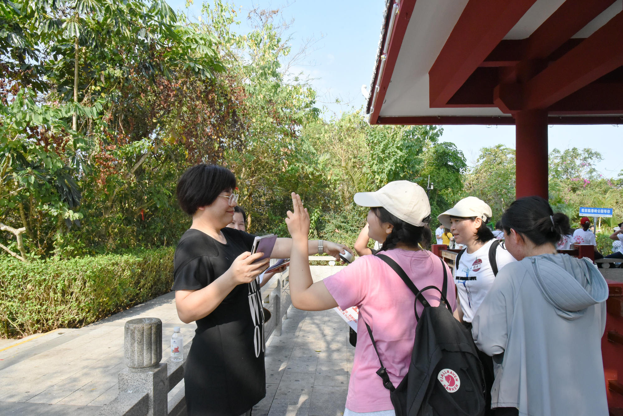登山途中,各小組要根據(jù)任務(wù)卡內(nèi)容,在指定地點(diǎn)按照規(guī)定動(dòng)作擺出相應(yīng)姿勢(shì)并拍攝合照。“五人手拉手比‘星’”“橫排側(cè)身齊步走”無(wú)論是簡(jiǎn)單的動(dòng)作還是有難度的姿勢(shì),各種各樣的造型大家都能輕松駕馭,紛紛在入口處、茶亭和瞭望塔留下趣味合照,很快闖關(guān)成功,迎接下一步挑戰(zhàn)。
