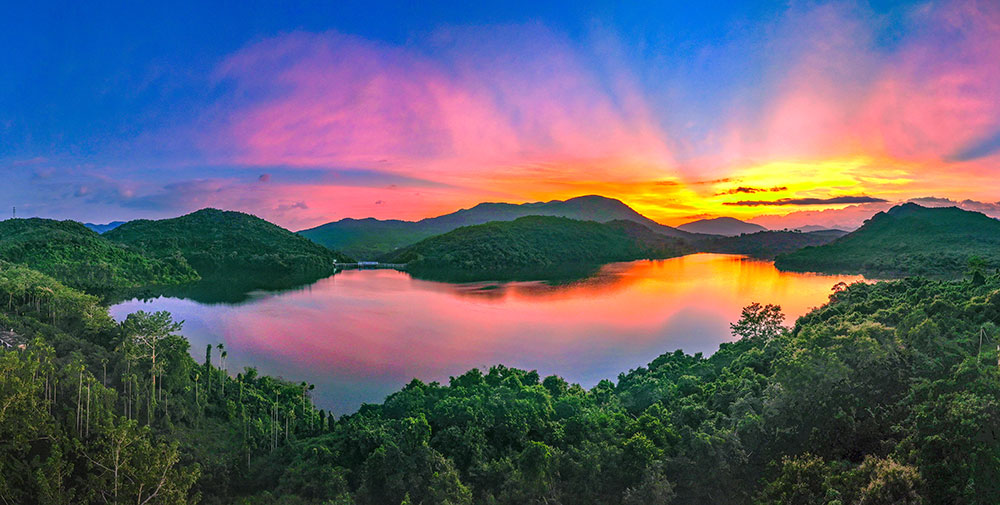 向荔枝溝和金雞嶺水廠供給原水的三亞市福萬(wàn)水庫(kù)建成于1980年,是三亞市第一期城市供水工程,座落于鳳凰鎮(zhèn),距離市區(qū)19公里。福萬(wàn)水庫(kù)的集雨面積33.25平方公里,總庫(kù)容1100萬(wàn)立方米,正常庫(kù)容1010萬(wàn)立方米,年供原水能力1007.4萬(wàn)立方米,提供荔枝溝水廠和金雞嶺水廠部分的原水需求。水質(zhì):鐵和錳有時(shí)超過(guò)國(guó)家《地表水環(huán)境質(zhì)量標(biāo)準(zhǔn)》(GB3838-2002)標(biāo)準(zhǔn),耗氧量、揮發(fā)酚類在Ⅰ-Ⅲ類標(biāo)準(zhǔn)內(nèi)波動(dòng),其余項(xiàng)目達(dá)到Ⅰ-Ⅱ類標(biāo)準(zhǔn)。