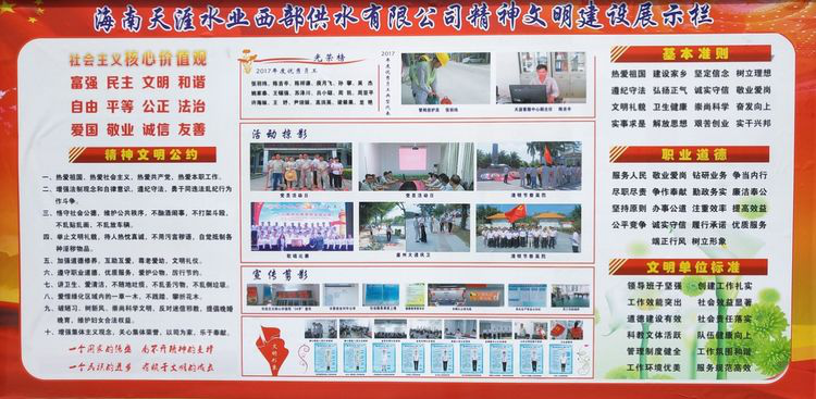 為貫徹落實(shí)市委、市政府的統(tǒng)一部署,深入開展助力“創(chuàng)文鞏衛(wèi)”工作,推動(dòng)“勇當(dāng)先鋒、做好表率”專題活動(dòng)與全國文明城市創(chuàng)建工作融合發(fā)展,引導(dǎo)和帶動(dòng)我司全體干部職工參與社會(huì)文明大行動(dòng),海南天涯水業(yè)(集團(tuán))公司開展“文明交通志愿服務(wù)”和“文明衛(wèi)生行動(dòng)”主題活動(dòng)。