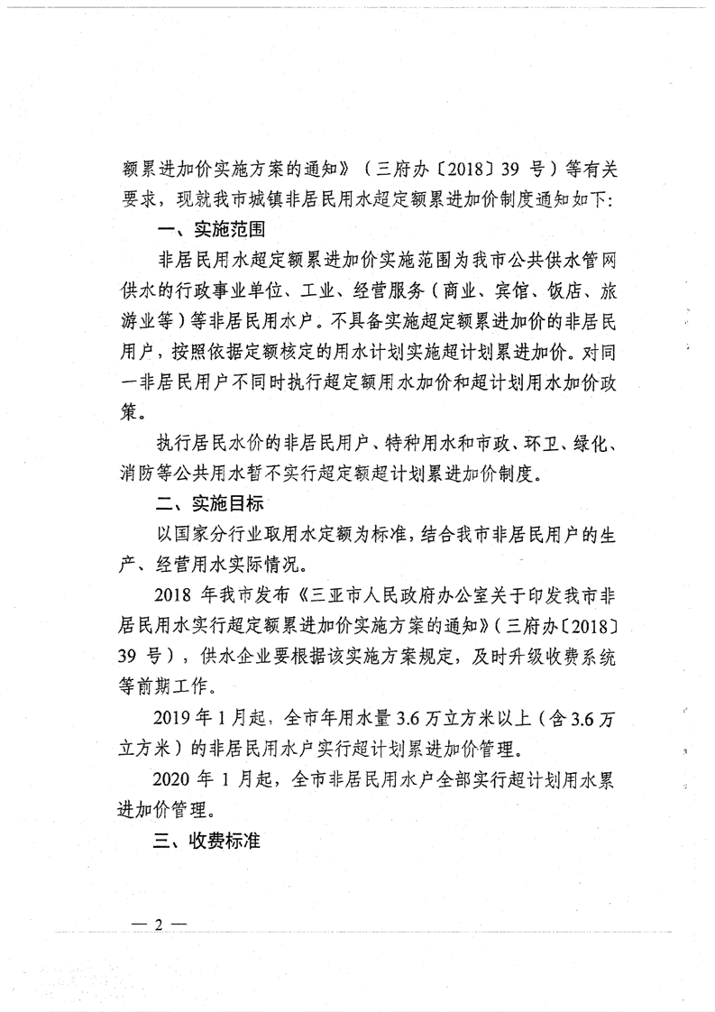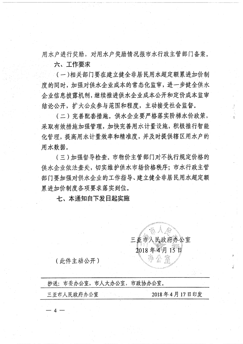 三府辦〔2018〕91號 關(guān)于印發(fā)三亞市非居民用水實行超定額累進加價制度到通知