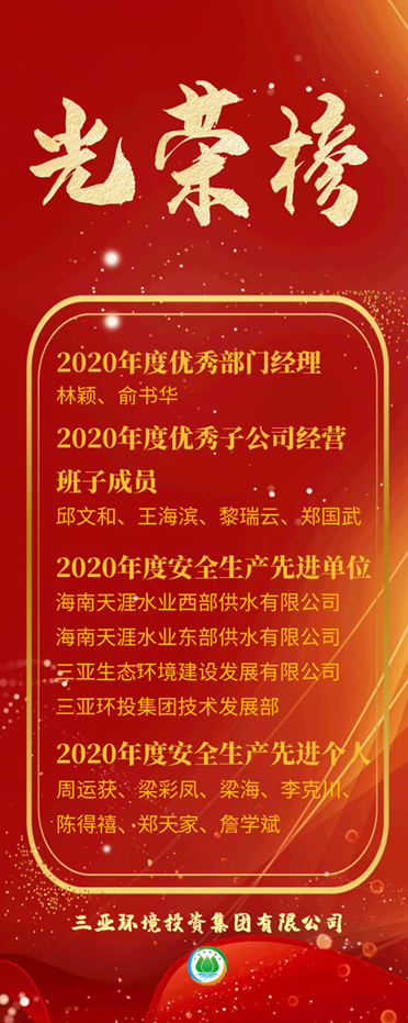 公司取得的優(yōu)異成績(jī),離不開我們?nèi)w環(huán)投人的共同努力,是我們?nèi)旧舷氯翰呷毫?,勠力同心,奮楫篤行的成果。在我們環(huán)投人的隊(duì)伍中,涌現(xiàn)出了一大批管理科學(xué)、敢于創(chuàng)新的先進(jìn)集體和盡職盡責(zé)、勇于奉獻(xiàn)的先進(jìn)分子。為了鼓勵(lì)先進(jìn),樹立典型,激發(fā)全體職工干部的奮斗熱情,公司決定對(duì)2020年度涌現(xiàn)出的先進(jìn)集體和先進(jìn)個(gè)人予以嘉獎(jiǎng)!