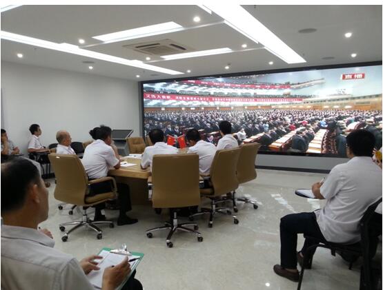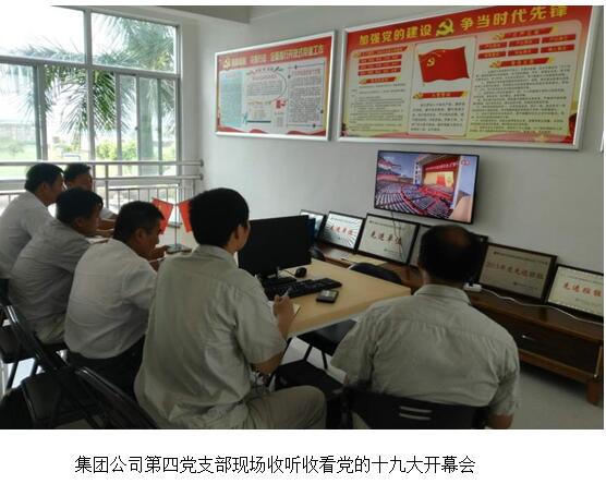2017年10月18日上午9時(shí),海南天涯水業(yè)(集團(tuán))公司黨委書記袁文革帶領(lǐng)集團(tuán)公司第一、二、三黨支部30名在崗黨員在集團(tuán)公司四樓總調(diào)度中心收聽收看中國共產(chǎn)黨第十九次全國代表大會(huì)開幕會(huì),集團(tuán)公司第四支部6名在崗黨員、第五支部11名在崗黨員分別在東部公司播放點(diǎn)和西部公司播放點(diǎn)集中觀看,合作公司第一至四黨支部35名在崗黨員在中法公司二樓黨員活動(dòng)中心集中觀看,其他四個(gè)支部共61名在崗黨員在荔枝溝水廠和青田水廠播放點(diǎn)集中觀看。海南天涯水業(yè)(集團(tuán))公司黨委共有13個(gè)黨支部,實(shí)到143名黨員干部現(xiàn)場(chǎng)收看黨的十九大開幕會(huì)。