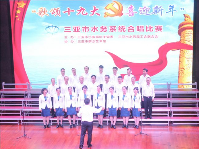 2017年12月27日,我司參加了在市群藝館舉辦的三亞市水務(wù)系統(tǒng)“歌頌十九大 喜迎新年”合唱比賽。經(jīng)過激烈角逐和專家評分,我司合唱團演唱的歌曲《祖國不會忘記》和《在燦爛的陽光下》以積極向上的精神風(fēng)貌和富有極強感染力的藝術(shù)效果奪得桂冠。